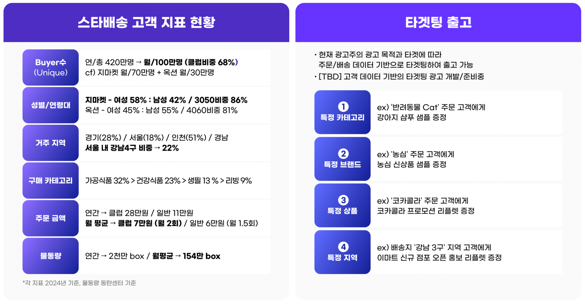 ✔︎ 기본 단가는 스타배송 전고객 대상 배포 기준이며 타겟팅 배포 시 건당 200원 비용 추가
