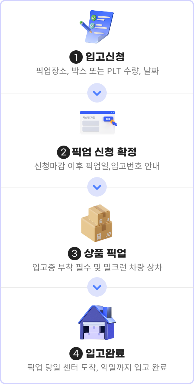 * 1회 입고 시 최소 5박스 부터 신청이 가능합니다.