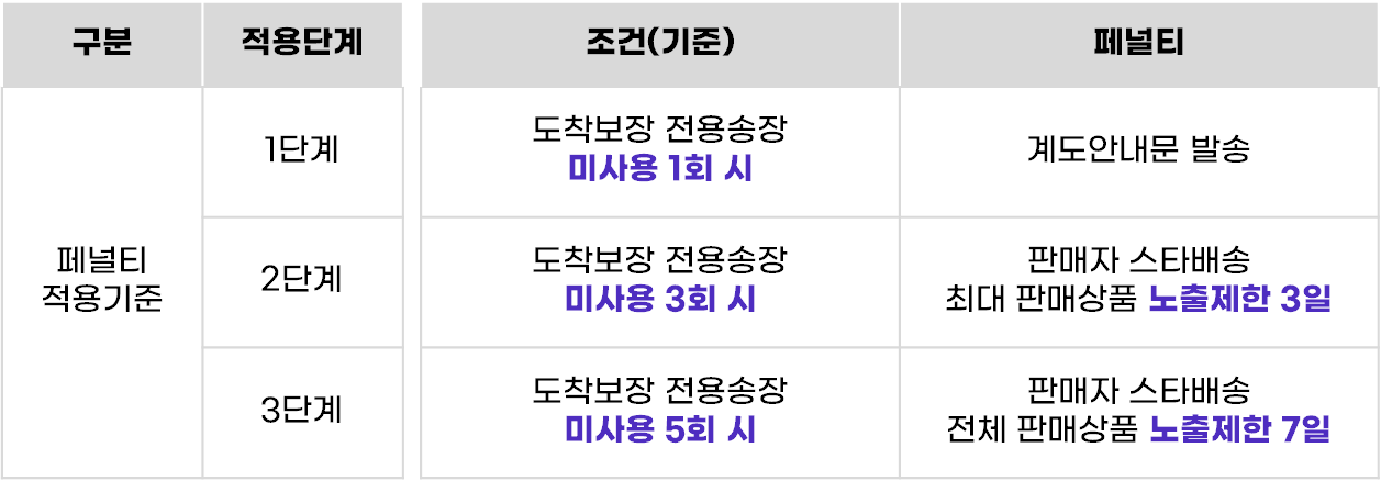 더욱 안정적이고 향상된 고객 경험을 제공하기 위해, 판매자 스타배송의 발송 지연 페널티 적용 기준이 변경되어 안내드립니다.