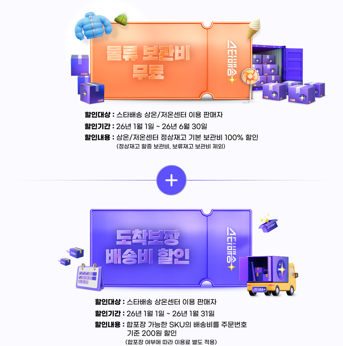 지금 시작하면 보관비 할인 + 도착보장 배송비 할인으로 스타배송을 부담없이 시작할 수 있어요.